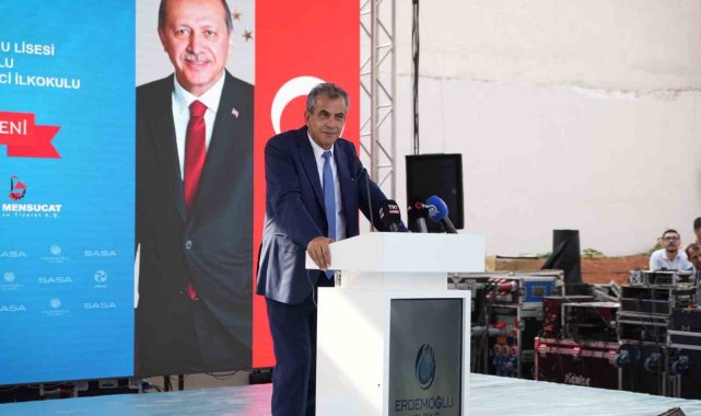 Hayırsever Erdemoğlu ailesi adına konuşan İbrahim Erdemoğlu, "Bugün burada ortağımız olan Zeki Mensucak'la birlikte yaptırdığımız ilkokulu, ortaokulu ve anadolu lisesi açılışını yapıyoruz. Bu mutlu günümüzde bizleri yalnız bırakmadığımız için hepinize ayrı ayrı teşekkür ediyorum ve saygılar sunuyorum" dedi.