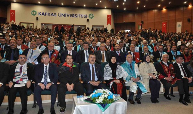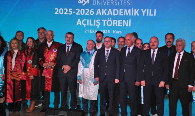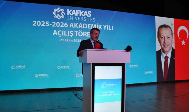 Milli Eğitim Bakanı Yusuf Tekin, Kars Kafkas Üniversitesi'nin 2025-2026 Akademik Yılı Açılış törenine katıldı. Bakan Tekin'i KAÜ Ahmet Arslan Kongre ve Kültür Merkezi'ne gelişinde Rektör Prof. Dr. Hüsnü Kapu ve rektör yardımcıları karşıladı. Tekin, etkinliği takip eden basın mensuplarının da 21 Ekim Dünya Gazeteciler Günü'nü kutlayarak karanfil verdi. Ardından Bakan Tekin, Kars'ta geçtiğimiz günlerde oynadığı Kafkas dansı ile sosyal medyada izlenme rekorları kıran 5'inci sınıf öğrencisi Hamza Tan'ın Kafkas gösterisini izledi. Saygı Duruşu ve İstiklal Marşı'nın okunmasıyla başlayan program yöresel müzik dinletisi ile devam etti.