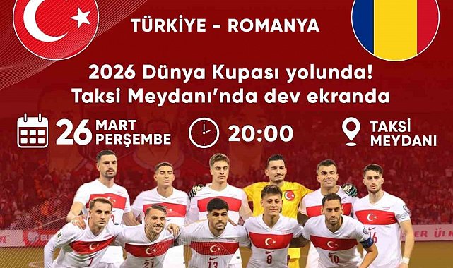 Dünya Kupası Avrupa Elemeleri Play-Off Yarı Finali kapsamında oynanacak karşılaşma, bugün saat 20.00'de Taksi Meydanı'nda kurulacak dev ekranda canlı olarak izlenebilecek.