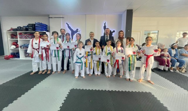 Tören, kuşak atlayan 40 sporcunun belgelerini ve yeni kuşaklarını almasının ardından, miniklerin sevinç gösterileri ve aileleriyle çektirdikleri hatıra fotoğraflarıyla sona erdi.