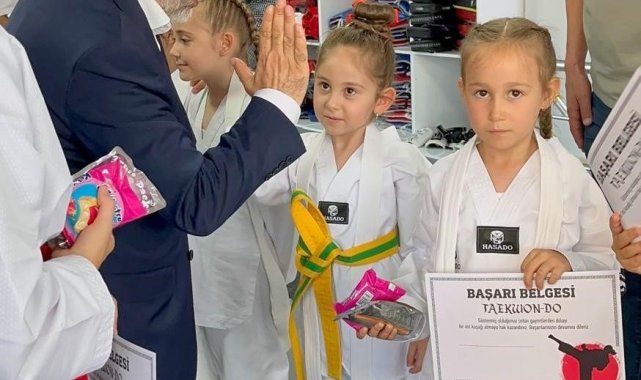 Eskişehir'de spor ve ahlakı bir araya getiren HKY Spor Kulübü, düzenlediği kuşak terfi töreniyle unutulmaz bir güne imza attı. Kulüp Başkanı ve Antrenörü, eski Dünya ve Avrupa Şampiyonu Milli Taekwondocu Hatice Kübra Bayrak'ın önderliğinde aylardır ter döken sporcular, emeklerinin karşılığını alarak bir üst kuşağa geçmeye hak kazandı. Yaklaşık 100 kişilik davetlinin katıldığı törende, minik sporcuların heyecanı ve ailelerin gururu görülmeye değerdi. Genç sporcuların bu önemli gününe törene iştirak eden Eskişehir İl Müftüsü Muharrem Gül, Gençlik ve Spor İl Müdürü Hasan Kalın ve Aile ve Sosyal Hizmetler İl Müdürü Orhan Bayrak, kuşak sınavını başarıyla tamamlayan sporculara yeni kuşaklarını ve başarı belgelerini bizzat takdim etti.