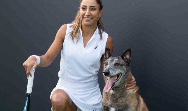 Milli Tenisçi Büyükakçay, patili dostu ile tenis oynadı