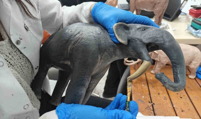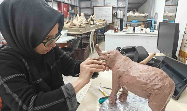 Kayseri'nin Kocasinan ilçesine bağlı Taşhan bölgesinde 7,7 milyon yıllık tarihe ışık tutan çalışmalarda çıkan fosiller, anatomik ölçeklerinde minyatür hale getirilerek, ziyaretçiler için hazırlanıyor.