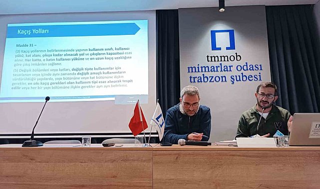 Trabzon Büyükşehir Belediyesi tarafından, Mimarlar Odası Trabzon Şubesi üyelerine, binalarda yangın güvenliği tedbirleri konusunda eğitim verildi. Büyükşehir Belediyesi İtfaiye Dairesi Başkanlığı Önleme Şube Müdürlüğü'nün uzman personeli tarafından verilen eğitim kapsamında, yasal rapor olan İtfaiye Raporu ve bu rapor düzenlenirken yapılarda dikkat edilmesi gereken hususlar ele alındı. Yapılan denetimler neticesinde karşılaşılan sorunların proaktif bir yaklaşımla önceden çözülebilmesi için, projeleri çizen mimarlarla iş birliği içinde hareket edilmesinin önemine dikkat çekildi.