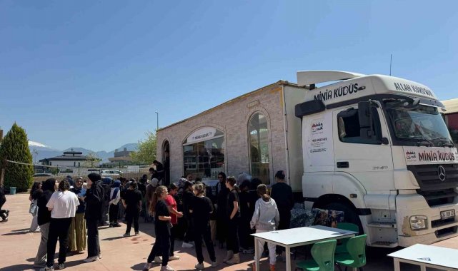 Denizli İmam Hatip Liseleri Mezunları ve Mensupları Derneği tarafından İsrail'in Filistin halkına uyguladığı vahşete dikkat çekmek için hazırlanan içinde Mescid-i Aksa maketinin yer aldığı Minia Kudüs Tırı, öğrencilerle buluşturuldu. Filistin, Mescid-i Aksa ile ilgili bilgilerinde verildiği tıra öğrenciler yoğun ilgi gösterdi.