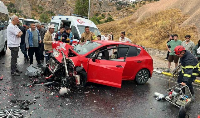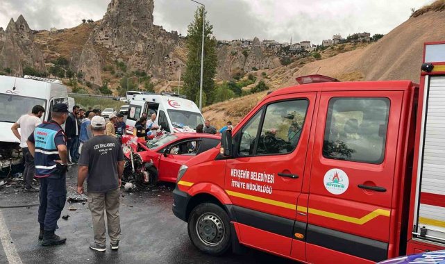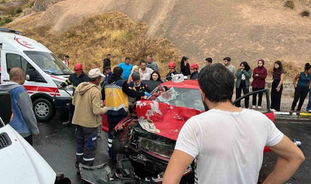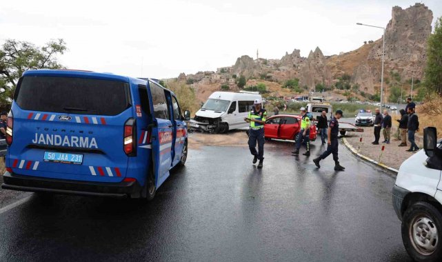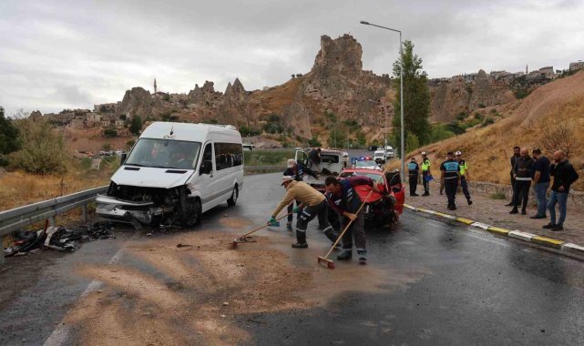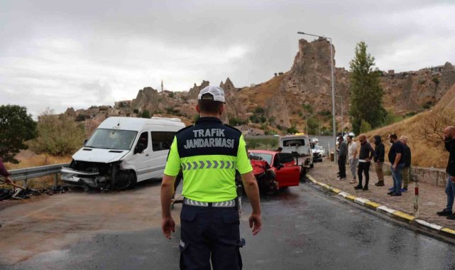 Nevşehir'de turistleri taşıyan minibüs ile otomobil kafa kafaya çarpıştı. Kazada 1'i turist 6 kişi yaralandı. Yaralılardan birinin durumunun ağır olduğu bildirildi.
