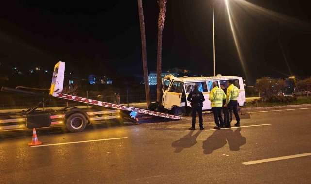 Antalya'nın Gazipaşa ilçesinde kontrolden çıkan minibüs refüjdeki ağaca çarptı. Kazada yaralanan sürücünün alkollü olduğu belirledi.