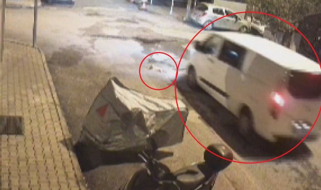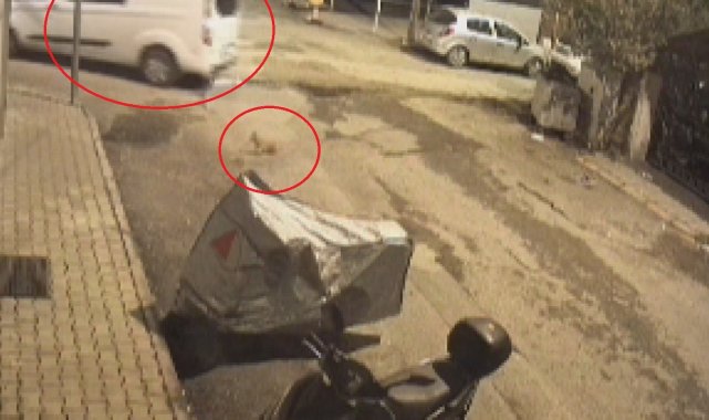 Minibüs sürücüsünün ezdiği kediye aldırış etmeden yoluna devam ettiği anlar kamerada