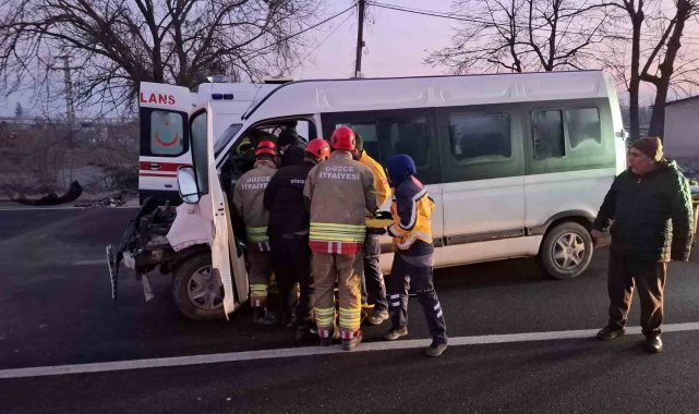 DÜZCE(İHA) – Düzce D100 karayolu hal kavşağında minibüs tıra arkadan çarptı. Kazada araç içinde sıkışan minibüs sürücüsü itfaiye ekiplerinin yardımı ile kurtarılarak hastaneye kaldırıldı.