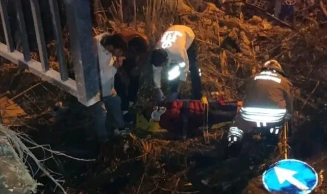 Minibüsle çarpışan motosiklet su kanalına devrildi: 2 kişi yaralandı