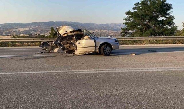 Çorum'da yolcu minibüsüyle çarpışan otomobilin ikiye bölündüğü feci kazada 11 kişi yaralandı.