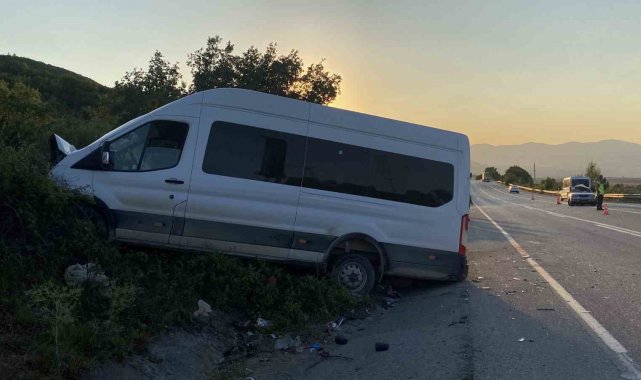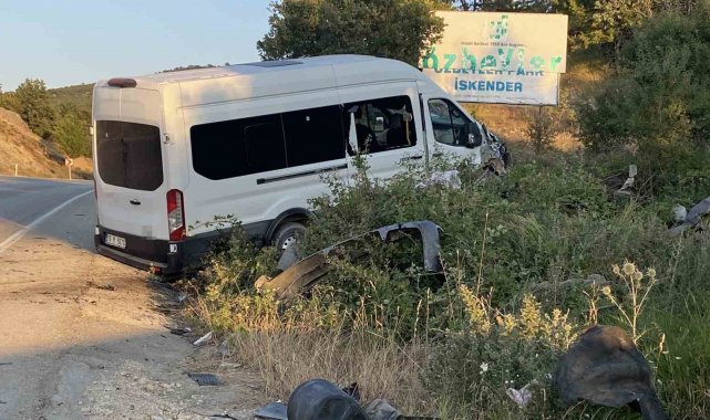 Minibüsle çarpışan otomobil ikiye bölündü: 11 yaralı