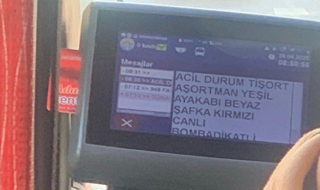 Kentte dün sabah saatlerinde minibüslerin toplu taşıma kart sistemine bir mesaj geldi. Gelen mesajda, "Acil durum, Tişört, eşofman yeşil ayakkabı beyaz şapka kırmızı, canlı bomba dikkat" sözlerine yer verildi. Toplu taşıma aracının sürücüleri ve mesajı gören vatandaşlar bir anlık paniğe kapıldı.