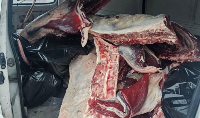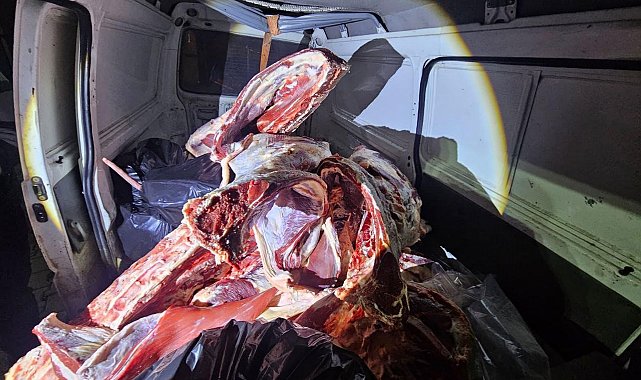 Hatay'da jandarma ekipleri tarafından durdurulan araçta menşei belirsiz 1 ton kırmızı et ele geçirildi.