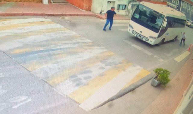 Kaza anı güvenlik kamerasına yansırken görüntülerde minibüsün M.M.'ye çarptığı ve altına aldığı görülüyor.