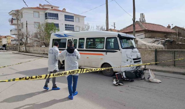 Karaman'da yolcu minibüsünün çarptıktan sonra altına alarak sürüklediği elektrikli bisikletteki 2 çocuk ağır yaralandı. Kaza anları kameraya yansıdı.