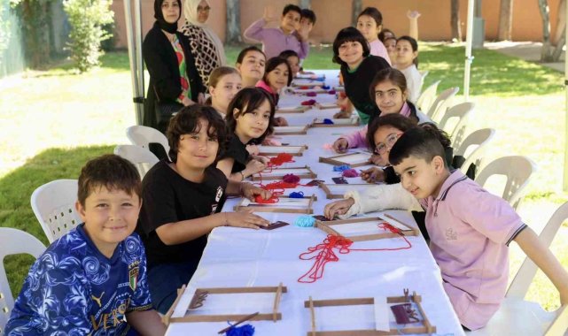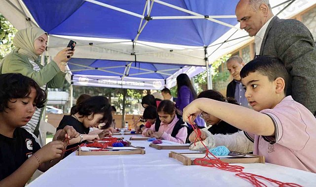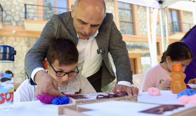 Minyatür halıları dokuyan çocuklar, keyifli bir gün geçirdi. Körfez Belediye Başkanı Şener Söğüt de zaman zaman çocuklara yardım etti.