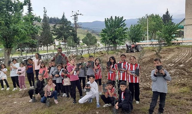 Manisa'nın Sarıgöl ilçesinin Sığırtmaçlı ilkokulu bahçesine öğretmen ve öğrencilerle birlikte Tirilye türü zeytin dikimi yaptı.