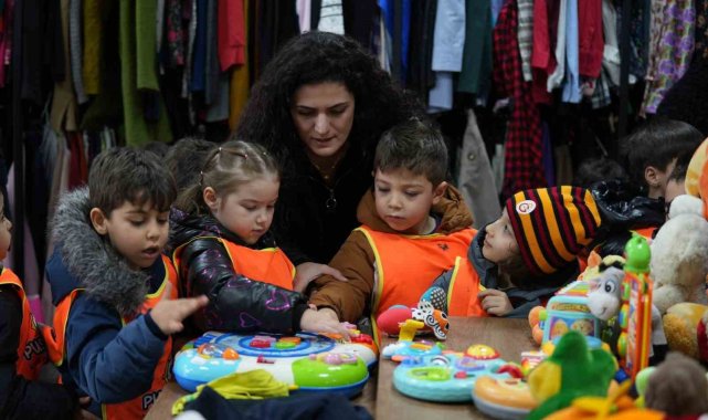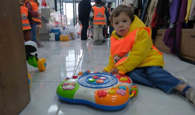 Bolu'da 5 yaşındaki kreş öğrencileri, Bolu Belediyesi Kültür Sanat ve Sosyal İşler Müdürlüğü'ne ait hayır çarşısına kendi yaşıtlarının kullanabileceği kıyafet ve oyuncak desteğinde bulundu.