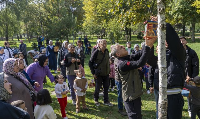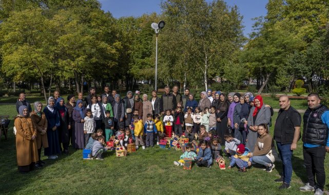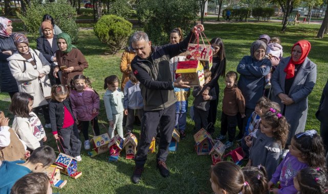 Bolu'da anaokulu öğrencileri, doğa sevgisini pekiştirmek ve çevre bilincini geliştirmek amacıyla boyadıkları kuş yuvalarını ağaçlara astı.