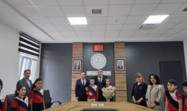 Afyonkarahisar Atatürk İlkokulu'ndan 35 öğrenci yazdıkları, ilk şiir kitapları "İçimizden Şair Çıktı"yı İl Milli Eğitim Müdürü Miraç Sünnetci'ye takdim etti.