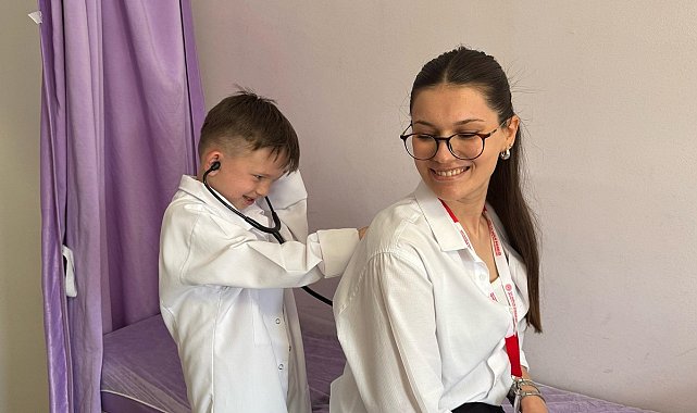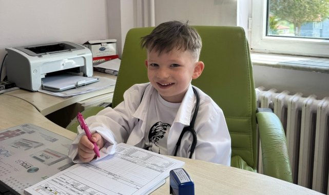 Anaokulu öğrencisi Mert Ersoy, hayalini kurduğu mesleğinin başına geçerken, bir de hasta muayenesi etti.