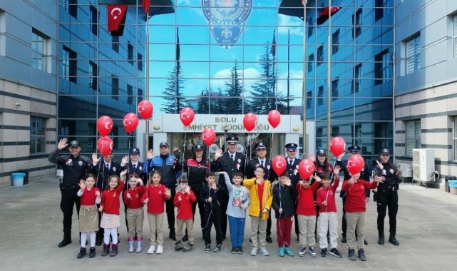 Bolu'da 10 Nisan Polis Haftası kutlamaları kapsamında, Canip Baysal İlkokulu öğrencileri, Bolu İl Emniyet Müdürlüğünde görevli olan anne ve babalarını ziyaret ederek Polis Haftalarını kutladılar.