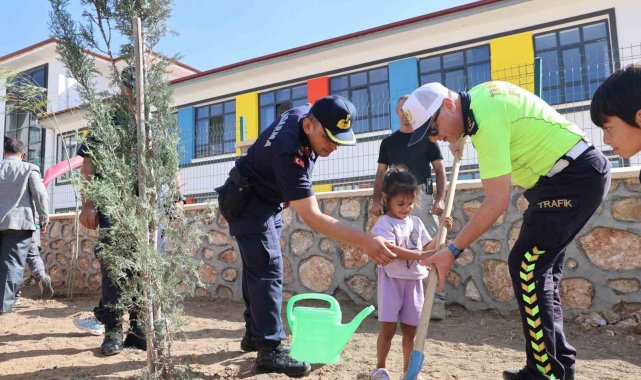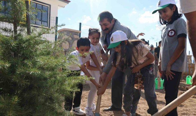 Minik öğrenciler, fidan dikerek okula başladı