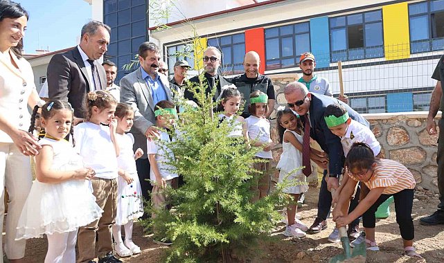 Elazığ'da anasınıfına başlayan öğrenciler, 'Yeşil Vatan' teması altında önce fidan dikti, ardından yeni eğitim öğretim yılına başladı.