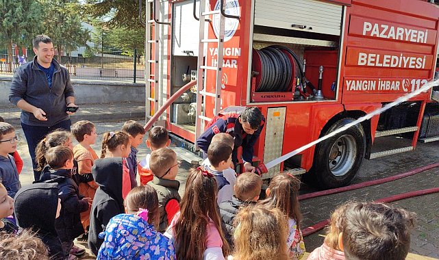 Pazaryeri Anaokulu'nda gerçekleştirilen programda minik öğrencilere itfaiyecilik mesleği tanıtıldı. Düzenlenen yangın tatbikatında öğrenciler, yangına nasıl müdahale edildiğini ve itfaiyecilerin görevlerini yakından görme fırsatı buldu. Tatbikata katılan Pazaryeri Belediye Başkanı Zekiye Tekin, çocukların meraklı bakışları ve heyecanına ortak oldu. Başkan Tekin, öğrencilere yangın güvenliği konusunda bilgi vererek, itfaiyeciliğin fedakârlık ve cesaret isteyen kutsal bir meslek olduğunun altını çizdi.