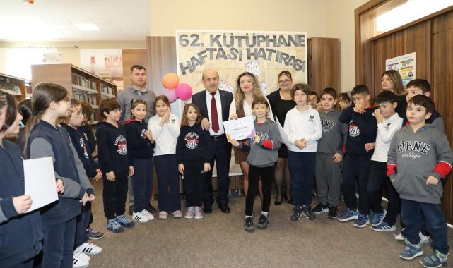 Minik öğrenciler kütüphane ziyaretinde kitap bağışında bulundu