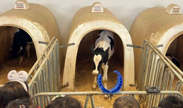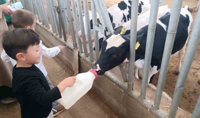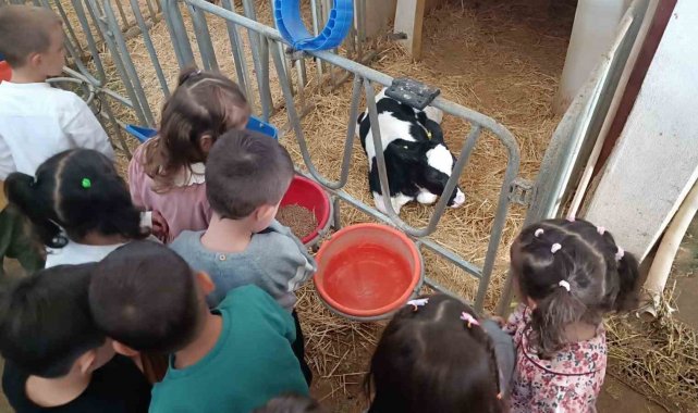 Çiftlik hayvanlarını yakından görme fırsatı bulan öğrenciler, araştırma merkezindeki gezi boyunca yürütülen tarım faaliyetleri hakkında bilgilendirildi, buzağı beslemesi ve yumurtaların nasıl toplandığını öğrendi.
