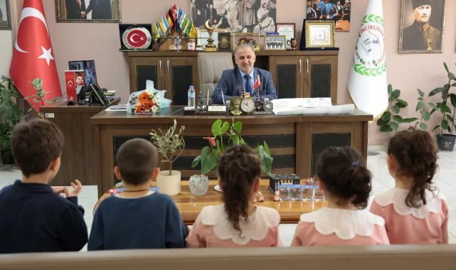Minik öğrencilerden Başkan Kaya'ya hediye