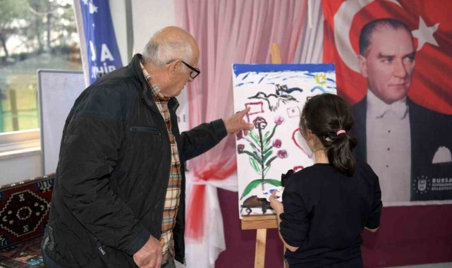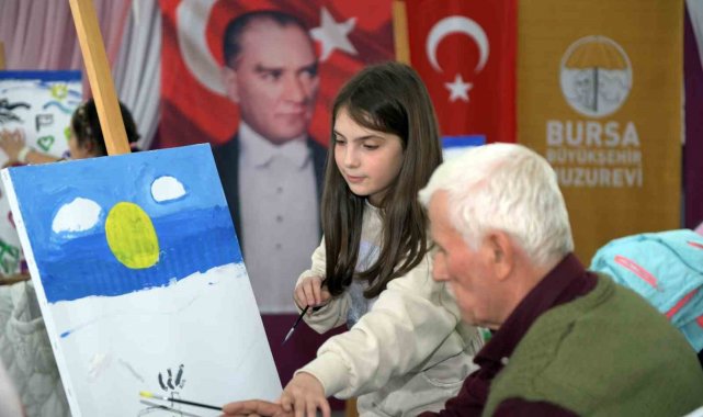 Osmangazi Belediyesi Hüdavendigar Yetenek Evi Resim Sınıfı öğrencileri huzur evi sakinleriyle bir araya gelerek resim yaptı.