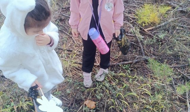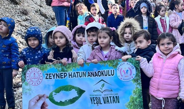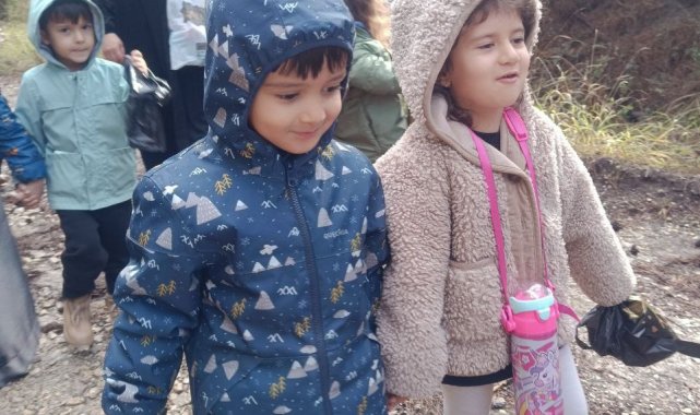 Bolu'nun Göynük ilçesinde bulunan Zeynep Hatun Anaokulu öğrencileri, "Yeşil Vatan" projesi kapsamında aileleriyle birlikte doğayı yerinde tanıma fırsatı buldu. Öğrenciler, öğretmenleri ve velilerinin katılımıyla gerçekleştirilen etkinlikte ormanlık alanları gezerek doğanın güzelliklerini yakından inceledi. Minik öğrenciler, ormanda kozalak, mantar ve kuşburnu toplayarak farklı ağaç türlerini tanıma imkanı buldu. Etkinlik boyunca çocuklara çevre bilinci kazandırmak ve doğayı korumanın önemi anlatıldı.