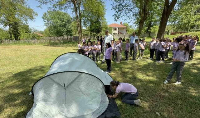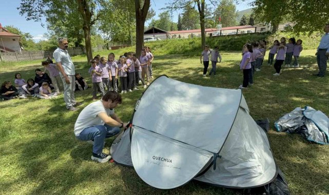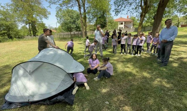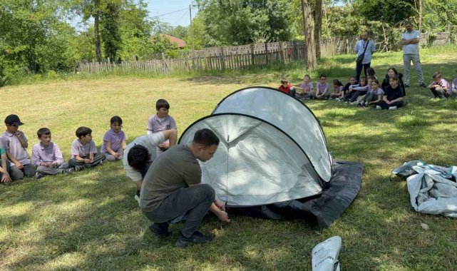 Düzce'de ilkokul öğrencilerinin kamp sevdasını öğrenen üniversiteli ağabeyleri, minik öğrencilerle buluşarak kamp eğitimi verdi. Öğrencilerin heyecanı yüzlerine yansıdı.