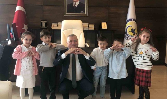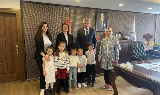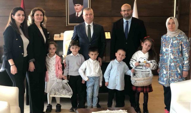 Samsun'da anaokulu öğrencileri protokol üyelerini tek tek ziyaret ederek bayramlarını kutladı.