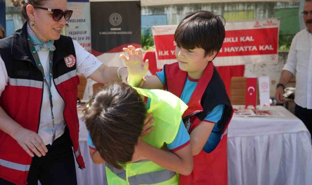 Samsun'da düzenlenen "Sağlıklı Çocuk, Sağlıklı Gelecek Şenliği" kapsamında ilkokul öğrencilerinden oluşan sağlık elçileri, diğer öğrencilere teorik ve uygulamalı sağlık bilgileri aktardı.