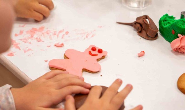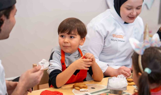 Yılbaşı temasına özel olarak kar tanesi, baston şemsiye, kardan adam ve yılbaşı şapkası gibi farklı şekillerde kurabiyeler yapan çocuklar, gönüllerince bir gün geçirdi. Pastacılık dersi eğitmen şefi Ece Eryener'in rehberliğinde, Gastronomi ve Mutfak Sanatları Bölümü öğrencileriyle çalışarak renkli şeker hamurlarına şekil veren, birbirlerinin kurabiyelerini süsleyen ve merak ettiklerini soran çocuklar, eğlenirken öğrenme fırsatı buldu.