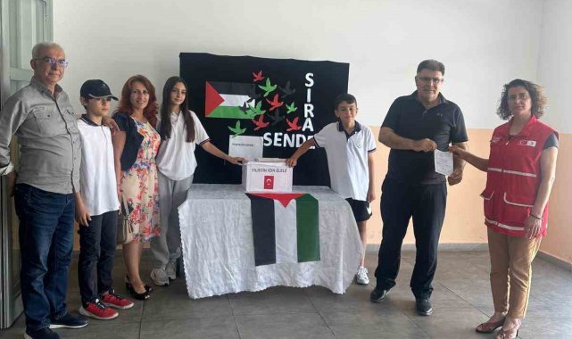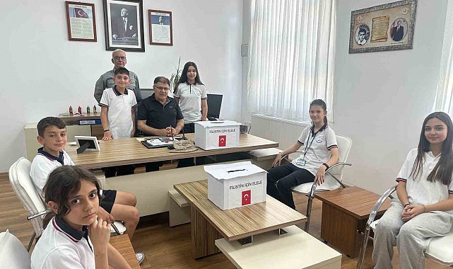 Aydın Gazipaşa Ortaokulu öğrencileri, 'Filistin için el ele' sloganıyla topladıkları 43 bin 800 TL harçlığı Gazze'ye gönderdi.