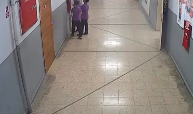 O anlar okulun güvenlik kameraları tarafından saniye saniye kaydedilirken, minik yüreklerin sergilediği duyarlılık izleyenlerin takdirini topladı.