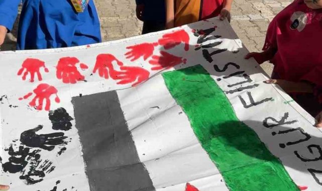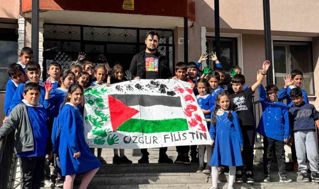 Minik öğrenciler, Filistin halkına destek vermek ve barış mesajı vermek amacıyla "Özgür Filistin" temalı bir pankart hazırladı. Etkinlik kapsamında öğrenciler, Filistin bayrağını temsil eden renklerle boyadıkları ellerini kumaşa basarak dayanışmanın simgesi olan bir çalışma ortaya koydu. Hazırlanan pankart okul binası önünde sergilendi. Sınıf öğretmeni Recep Akbaş, etkinliğin amacının öğrencilere barış, kardeşlik ve insanlık değerlerini aşılamak olduğunu belirterek, "Çocuklarımızın dünyada yaşanan haksızlıklara karşı duyarlı bireyler olarak yetişmesini istiyoruz. Bu etkinlik, küçük yaşta empati ve bilinç oluşturmak için güzel bir adım oldu." dedi.