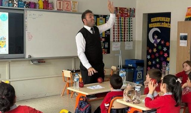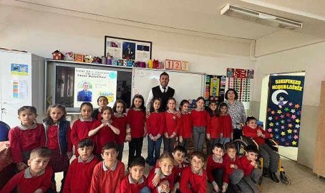 'Mavi' adlı öykü kitabının yazarı Erhan Köçer, Celal Akın İlkokulu 1. Sınıf öğrencilerinin davetine duyarsız kalmadı. 1/D sınıfı öğrencileri için kitap imzalayan Yazar Köçer, suyun önemini anlattı.