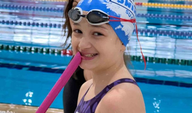 Minik yüzücüler, paletle ilk kez yüzdü