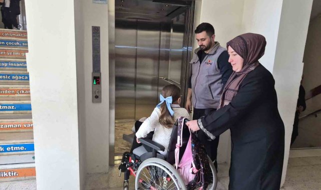 Eskişehir'de PEV (Pes Ekinovarus) hastalığı sebebiyle kendi başına yürüyemeyen ve annesinin her gün kucağında taşıyarak sınıfa götürdüğü 7 buçuk yaşındaki Zeynep İkra Albayrak'ın okuluna yapılan engelli asansörü açıldı.