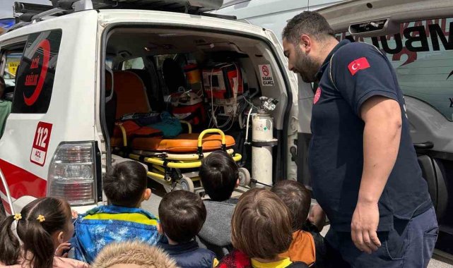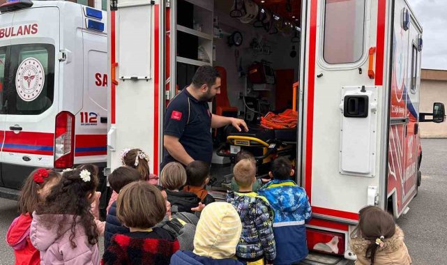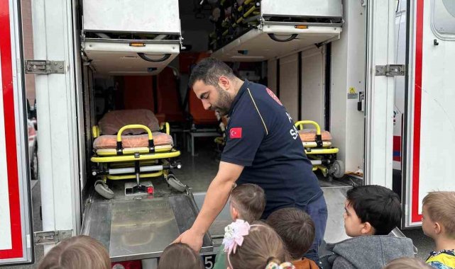 Sakarya'nın Serdivan ilçesinde 112 Acil sağlık personeli, anaokulu öğrencilerine hizmetleri hakkında bilgiler vererek ambulans tanıtımı yaptı.