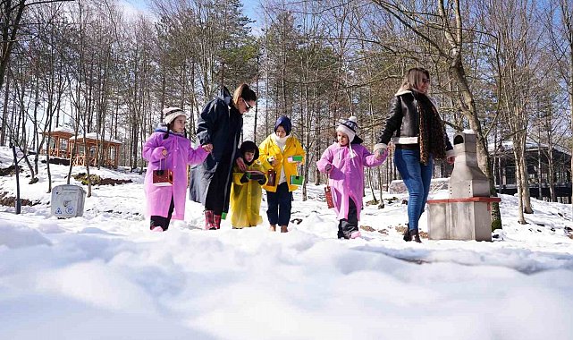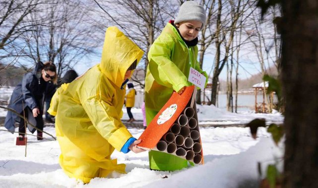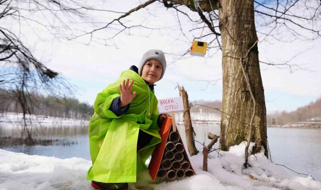 Düzce Belediyesi Çocuk Üniversitesi Anaokulu öğrencileri 14 Şubat Sevgililer Günü'nde 'Doğa Sevgisi' temasıyla örnek bir projeye imza attı. Doğa Bilimleri Atölyesi derslerinde öğrendikleri doğal yaşamın sürekliliğini desteklemek ve korumak konularında uygulama yapan öğrenciler öğretmenleri ile birlikte Korugöl Tabiat Parkı'nı ziyaret etti. Kış mevsiminde doğal hayatta yaşamlarını sürdüren hayvanlar için barınma alanı ve yiyecek hazırlığı yapan minikler, atık malzemelerden tasarladıkları Böcek Oteli isimli küçük barınma noktaları ile doğada diğer hayvanlar için mamalar hazırlayarak farklı noktalara bıraktı. Ayrıca yine atık malzemelerden kuş yuvaları da yapan öğrenciler içine yem koyarak yuvaları uygun ağaç dallarına yerleştirdi. Öğretmenleri ile hem doğal yaşam üzerine sohbet eden hem de doğada yaşayan hayvanların korunmasına destek olmak için neler yapılacağı konusunu uygulamalı olarak tecrübe eden öğrencilerin mutluluğu da gözlerinden okundu.