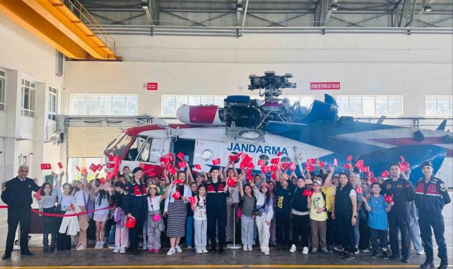 Aydın'ın İncirliova ilçesinde öğrenim gören 230 ilkokul öğrencisi Jandarma Helikopter Filo Komutanlığını ziyaret etti.
