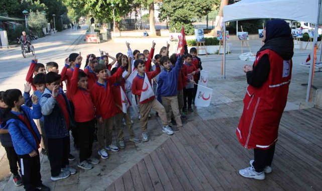 Türk Kızılay Aydın İl Merkezi Başkanlığı tarafından Kızılay Haftası kapsamında "Kızılay Sokak" ve Resim Sergisi etkinliği düzenlendi. Efeler ilçesindeki okullar bölgesi olarak bilinen Gençlik Caddesi'nde gerçekleştirilen etkinliğe minik öğrenciler yoğun ilgi gösterdi. Kızılay'ın çalışmalarını yakından tanıma fırsatı bulan öğrenciler, resim sergisini gezerek Kızılay'ın insani yardım faaliyetleri hakkında bilgi aldı. Ayrıca kan bağışının önemine dikkat çeken minikler, herkesi bağış yapmaya davet etti. Etkinlik kapsamında kurulan stantlarda öğrencilere çeşitli ikramlar ve hediyeler sunulurken, yüz boyama etkinliği de renkli görüntülere sahne oldu. Kızılay Haftası Hatıra Köşesi'nde bol bol fotoğraf çektiren öğrenciler, unutulmaz bir gün geçirmenin mutluluğunu yaşadı.