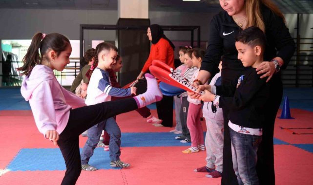 Sporu sevdirmek, sosyalleşmek ve eğlenceli etkinlik yapmak adına anasınıfı öğrencilerini tekvando salonuna davet eden Kepez Belediyespor Kulübü, miniklerin kalbini kazandı. Şahinevler Ortaokulu Anasınıfı öğrencileri, Turgut Özal Spor Salonu'na davet edildi. Motorik beceri gelişimi hareketleri, göz koordinasyon çalışmasını oyun formatında yapan çocuklar, tekvandonun en temel tekme ve yumruk tekniklerini öğrendi. Tekvando branşına 6 yaşından itibaren kursiyer kabul ettiklerini belirten antrenör Derya Uyankaya, "Kulübümüzün yaz tatilinde düzenlediği spor okullarından daha fazla çocuğun yararlanmasını istiyoruz. En uzun tatillerini spor disiplini içinde verimli değerlendirmelerini arzuluyoruz" dedi.